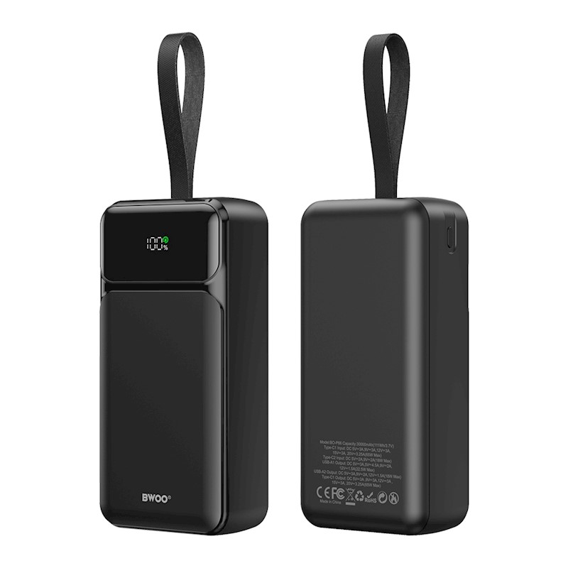 BWOO 65W power bank 30000 mAh 2x USB-A, 1 x USB-C with LCD display, black