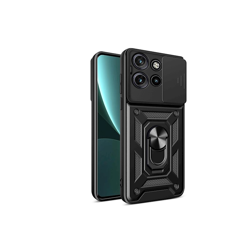 Defender Slide is a reinforced case for smartphones that provides good protection for the device. The product consists of several layers that stiffen and strengthen its construction. The case is made from PC, TPU, and features a built-in aluminum finger holder. The entire series has a movable camera cover that protects the lenses and ensures privacy. Additionally, raised edges protect the screen from cracking or scratching. The cases have necessary cutouts for ports and embossed areas for buttons. The frame has holes that allow for the attachment of a strap or lanyard. The Defender Slide case is compatible with magnetic mounts.