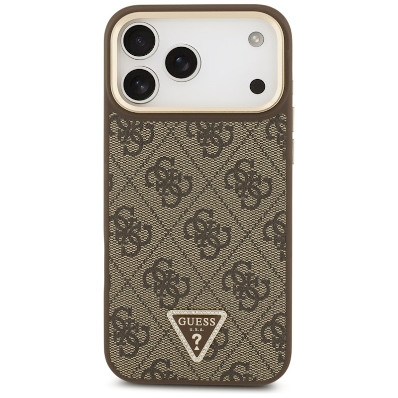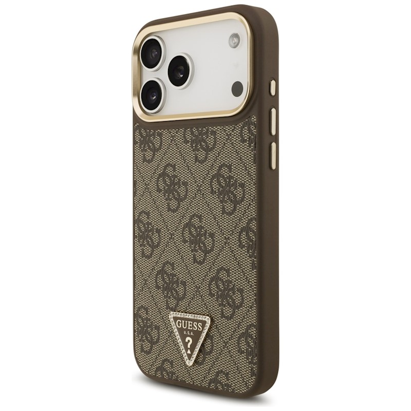 Guess 4G Triangle Logo & Big Strap Metal Buttons MagSafe case for iPhone 17 Pro Max brown